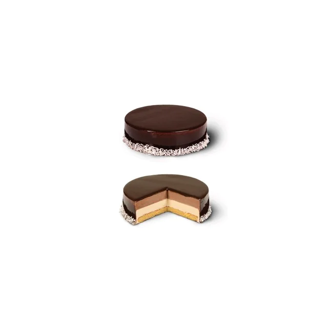Torta pan di spagna di riso, mousse di cioccolato bianco e mousse di cioccolato fondente.