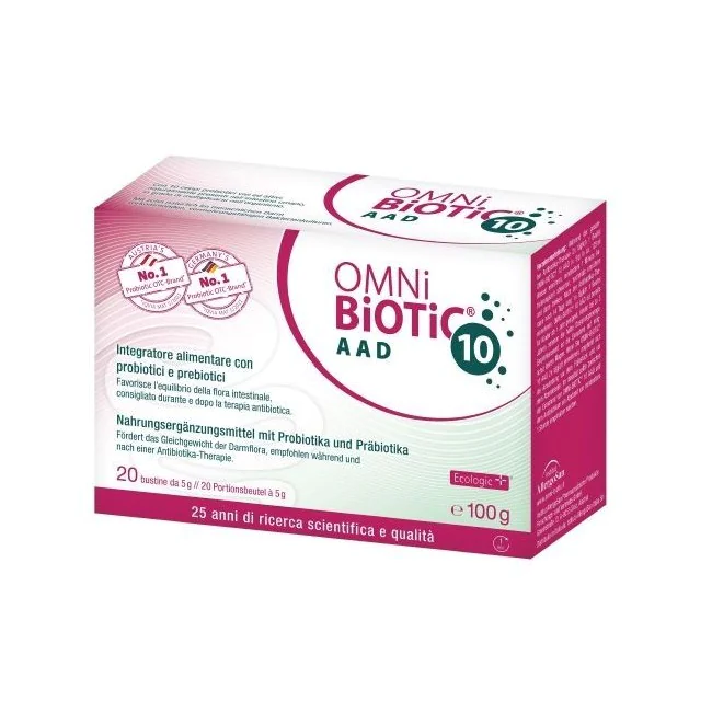 Se si assume OMNi-BiOTiC 10 AAD 2 volte al giorno, si raccomanda di farlo prima di colazione e di cena. Far trascorrere almeno 1 ora tra l’assunzione di OMNi-BiOTiC 10 AAD e l’antibiotico.