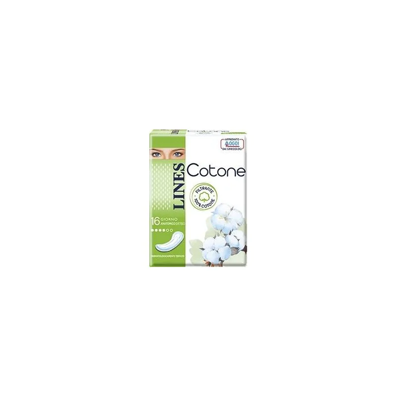 La gamma Lines Cotone è composta dalle seguenti referenze: lines cotone ultra ali lines cotone ultra ali notte lines cotone non ultra giorno lines cotone non ultra notte lines cotone proteggislip disteso.