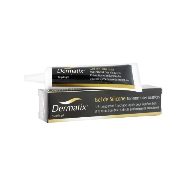 Gel trasparente di silicone che, trattando le cicatrici dovute a interventi chirurgici, ustioni e altre lesioni, asciuga rapidamente e contribuisce all’idratazione cutanea. Dermatix appiattisce, ammorbidisce e rende più lisce le cicatrici, allevia il dolore, il prurito e il disagio ad esse correlato, oltre a rendere meno accentuato l’arrossamento associato al tessuto cicatriziale. Dermatix gel è facilmente applicabile su tutte le superfici cutanee, compresi viso, articolazioni e parti del corpo sollecitate dal movimento e asciuga rapidamente, formando una “pellicola” trasparente. Dermatix è stato sviluppato utilizzando gli stessi polimeri di base a catena lunga impiegati nelle pellicole in gel di silicone ed è disponibile in tubo. Il gel contiene polisilossano.