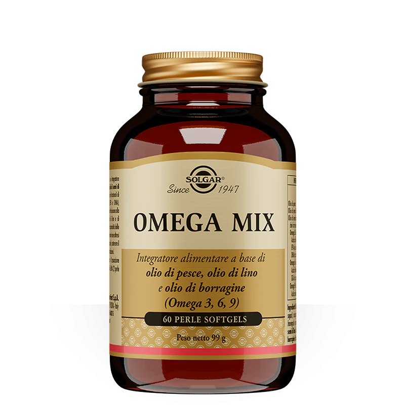 Integratore alimentare a base di olio di pesce, olio di semi di lino e olio di semi di borragine, fonti naturali di acidi grassi insaturi omega-3 (EPA e DHA), omega-6 e omega-9. EPA e DHA contribuiscono alla normale funzione cardiaca*. Gli oli di lino e di borragine sostengono l'integrità e la funzionalità delle membrane cellulari; l'olio di borragine interviene altresì nel contrastare I disturbi del ciclo mestruale e sostenere il trofismo e la funzionalità di pelle e articolazioni.