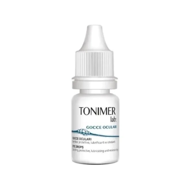 Tonimer Lubri Vision gocce oculari monodose è una soluzione oftalmica sterile a base di ipromellosa e sodio ialuronato, con un pH fisiologico; per una prolungata azione idratante e lubrificante della superficie oculare. L’assenza di conservanti consente l'utilizzo della soluzione anche da portatori di lenti a contatto. Somministrare prima di indossare le lenti a contatto. L’ipromellosa è un polimero viscoso con proprietà umettanti e mucomimetiche che creando uno scudo protettivo, trasparente e viscoelastico contribuisce a stabilizzare il film lacrimale. Grazie alle sue proprietà l'ipromellosa protegge e lubrifica la superficie oculare riducendo la sensazione di secchezza oculare e dona un sollievo a lunga durata agli occhi irritati, contribuendo a ristabilire il naturale film oculare. Il sodio ialuronato è un componente viscoso utilizzato per i suoi effetti idratanti e lubrificanti. Grazie alle sue proprietà crea un film viscoelastico e trasparente che protegge la mucosa oculare che va ad agire contro gli agenti esterni e contrasta un occhio moderatamente secco. Tonimer Lubri Vision gocce oculari monodose diminuisce i sintomi di secchezza agli occhi, bruciore, prurito e sensazione di corpo estraneo, contribuendo a ristabilire il naturale film oculare. Tonimer Lubri Vision gocce oculari monodose idrata e lubrifica a lungo la superficie oculare, dando sollievo prolungato ad occhi secchi causati da un uso eccessivo del PC, ammiccamento infrequente, trattamenti medici particolari, inquinamento atmosferico (es. aria condizionata, vento e sole) ed anche ad occhi stressati dall'uso delle lenti oculari.